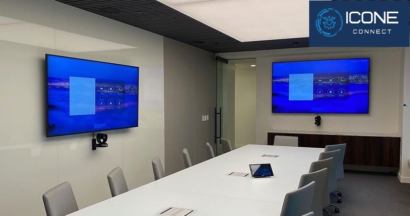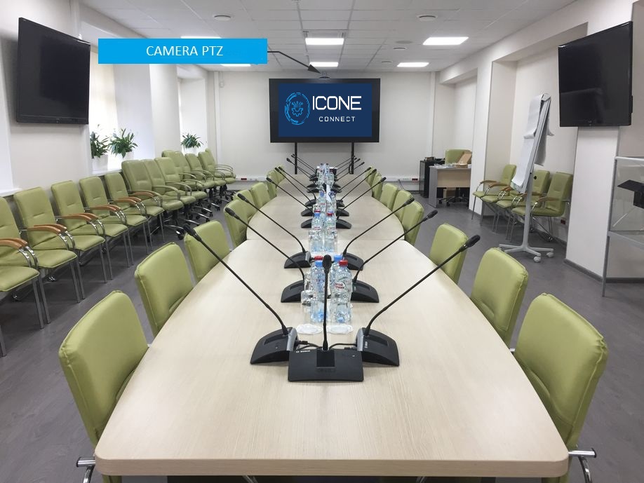 Salle de réunion avec 2 caméras PTZ et réplication sur 2 écrans